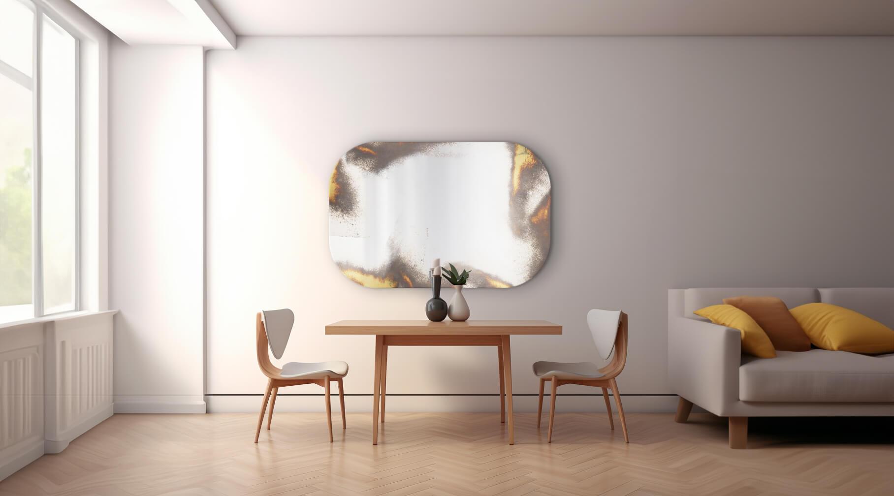 Lustra Geometric 05 to ręcznie wykonane prostokątne modele z mocno zaokrąglonymi rogami, stworzone z wysokiej jakości szkła hartowanego o grubości 4 mm oraz srebra. W dostępnych 14 unikalnych wykończeniach, które obejmują odcienie szarości, czerni, granatu, brązów, złota, miedzi i srebra. Lustra te wprowadzają do wnętrz szlachetny, klasyczny klimat. Stanowią idealne połączenie eleganckiego designu i funkcjonalności, doskonale pasując do salonu, sypialni, łazienki, korytarza czy nad toaletkę. Oferują także możliwość pełnej personalizacji – dostępne są różne rozmiary oraz modyfikacje wykończeń, które pozwalają dostosować lustro do indywidualnych potrzeb.