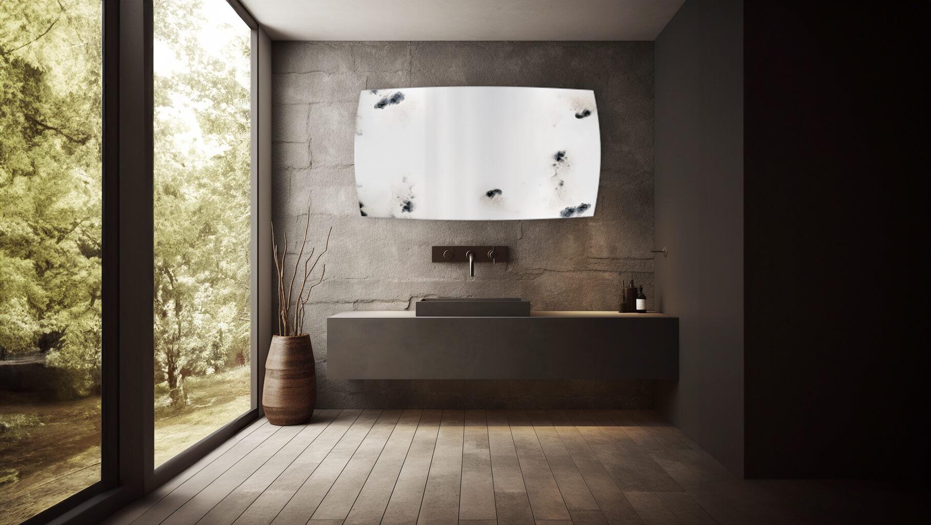 to wyrazista technika postarzania luster, która nadaje im surowy, a zarazem intrygujący charakter. Efekt powstaje w wyniku kontrolowanego oddziaływania chemicznego na warstwę srebra, tworząc nieregularne, ciemne plamy przypominające komórkowe struktury. Plamy te wyróżniają się wyraźnymi krawędziami i różną intensywnością, co nadaje tafli wyjątkowej głębi i dynamiki.